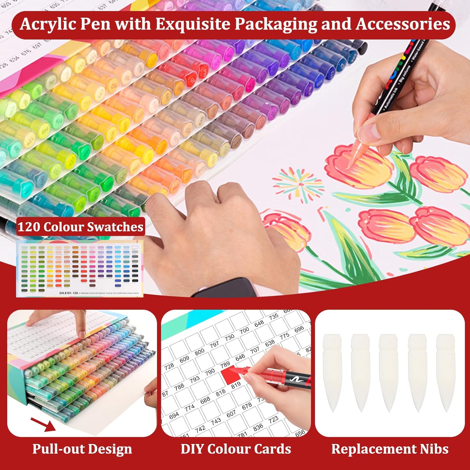 【Color Abundance】:The 120 - color acrylic paint pens set creates an extremely rich palette. Ranging from bright to subtle shades, each color has a unique depth. Whether for detailed creations or casual doodles, you can instantly match the ideal color, adding charm to your works.