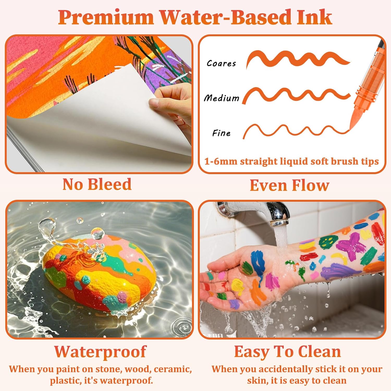 - Safe, User-Friendly, and Durable: Made with non-toxic, water-based ink, these markers are safe and odorless, perfect for artists of all ages. The ink adheres firmly to various surfaces, offering a waterproof and fade-resistant finish that ensures long-lasting vibrancy.
