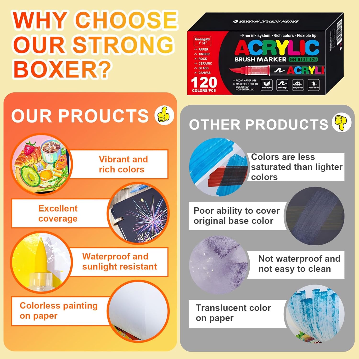 Bring your artwork to life with Guangna Acrylic Brush Paint Markers — the perfect blend of flexibility, precision, and vibrant color. Featuring a soft, elastic brush tip, these markers create everything from fine 1mm details to bold 6mm strokes with ease.
